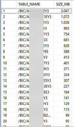 Similarly, we can also get the tables containing the oldest changelogs, but from the RSPMREQUEST table in the ABAP Schema