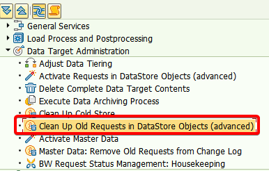 *as ADSO nameRemove Old Requests from changelogas Clean-up Action- The maximum days any changelog should be retained in the system – 100 days in the below example